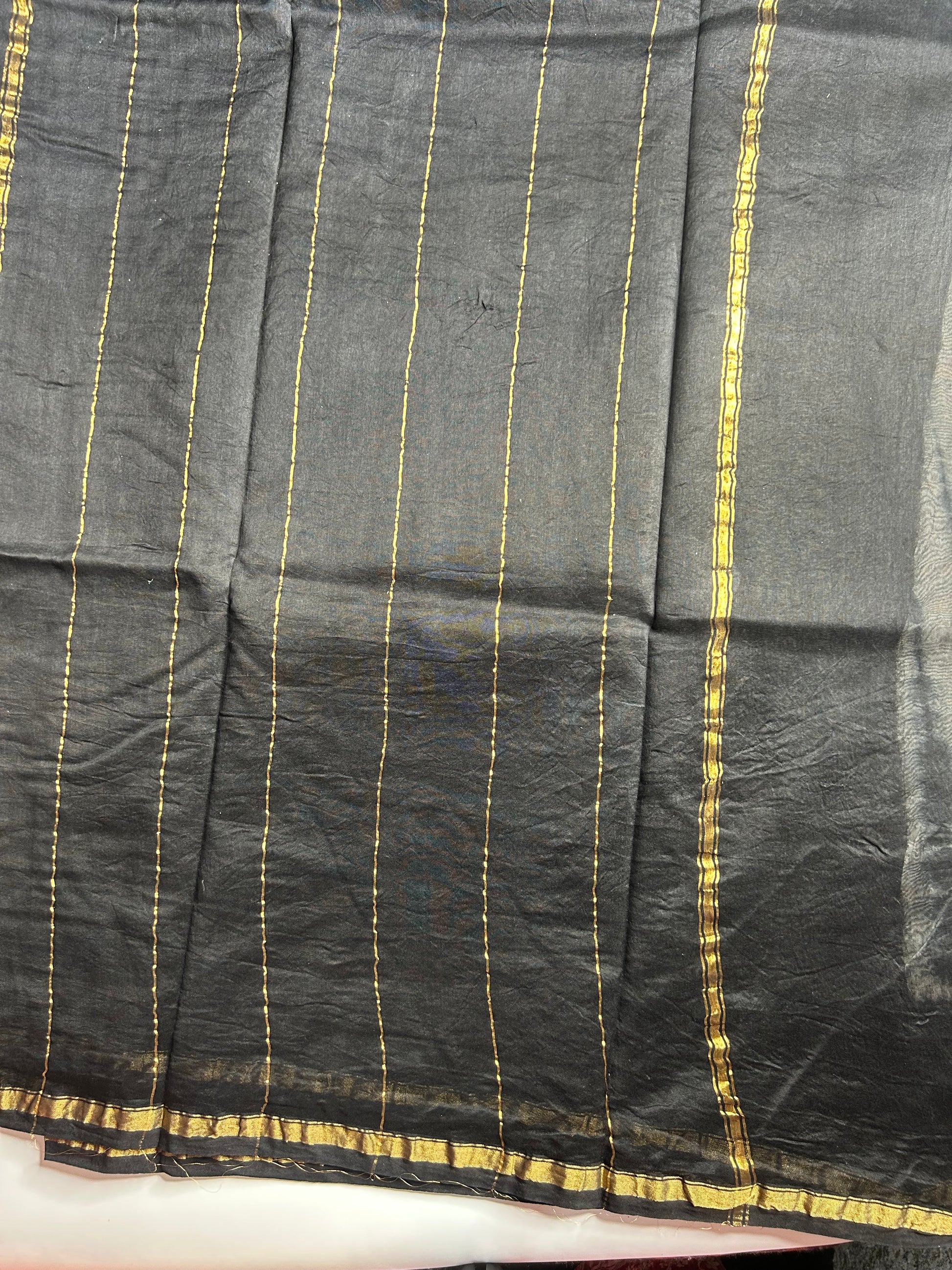 A lightweight Chanderi silk cotton saree in classic black and white, featuring elegant Shibori tie-dye patterns. Chic, breathable, and perfect for festive wear or sophisticated everyday draping. Comes with a matching blouse piece.
