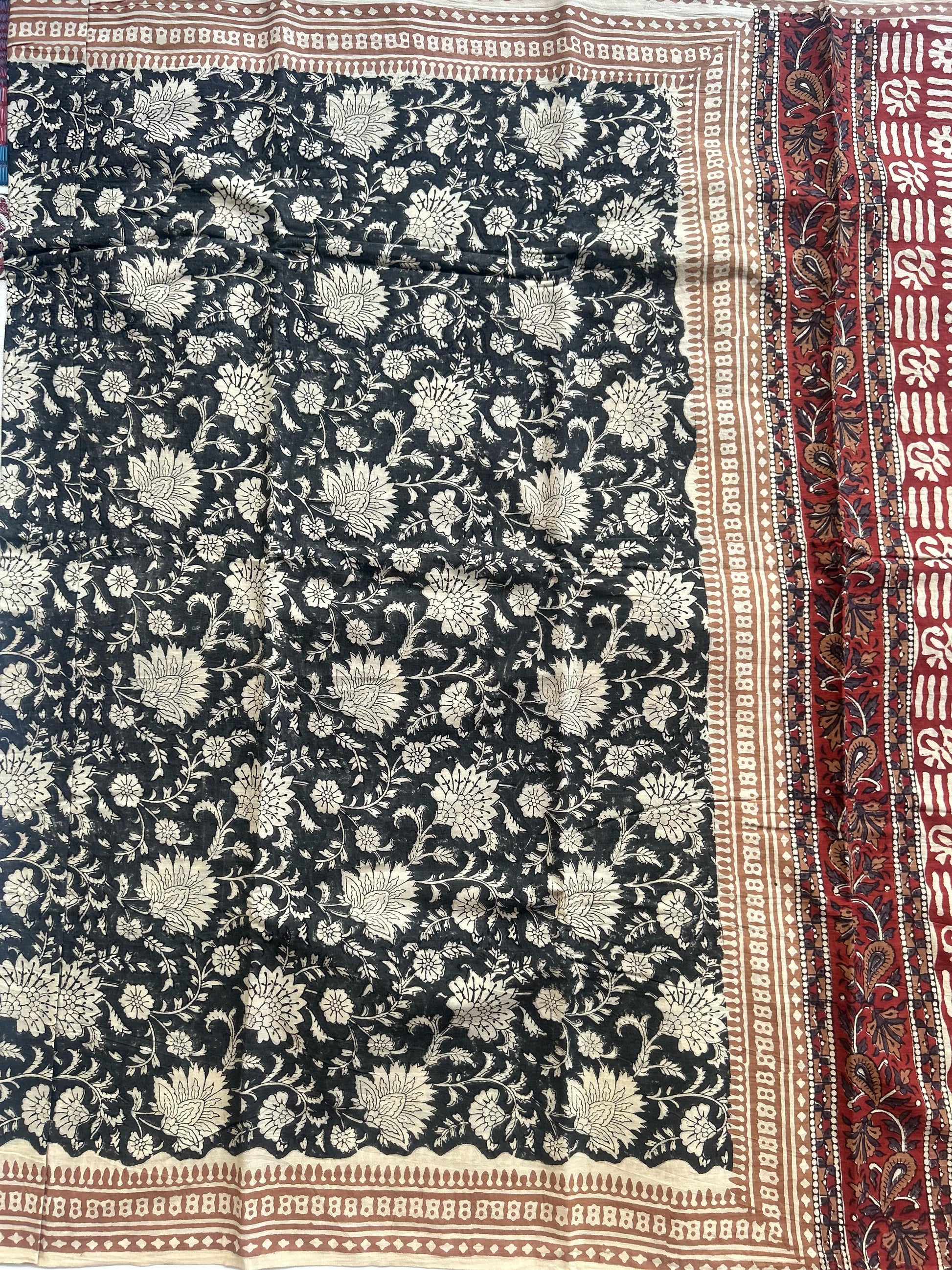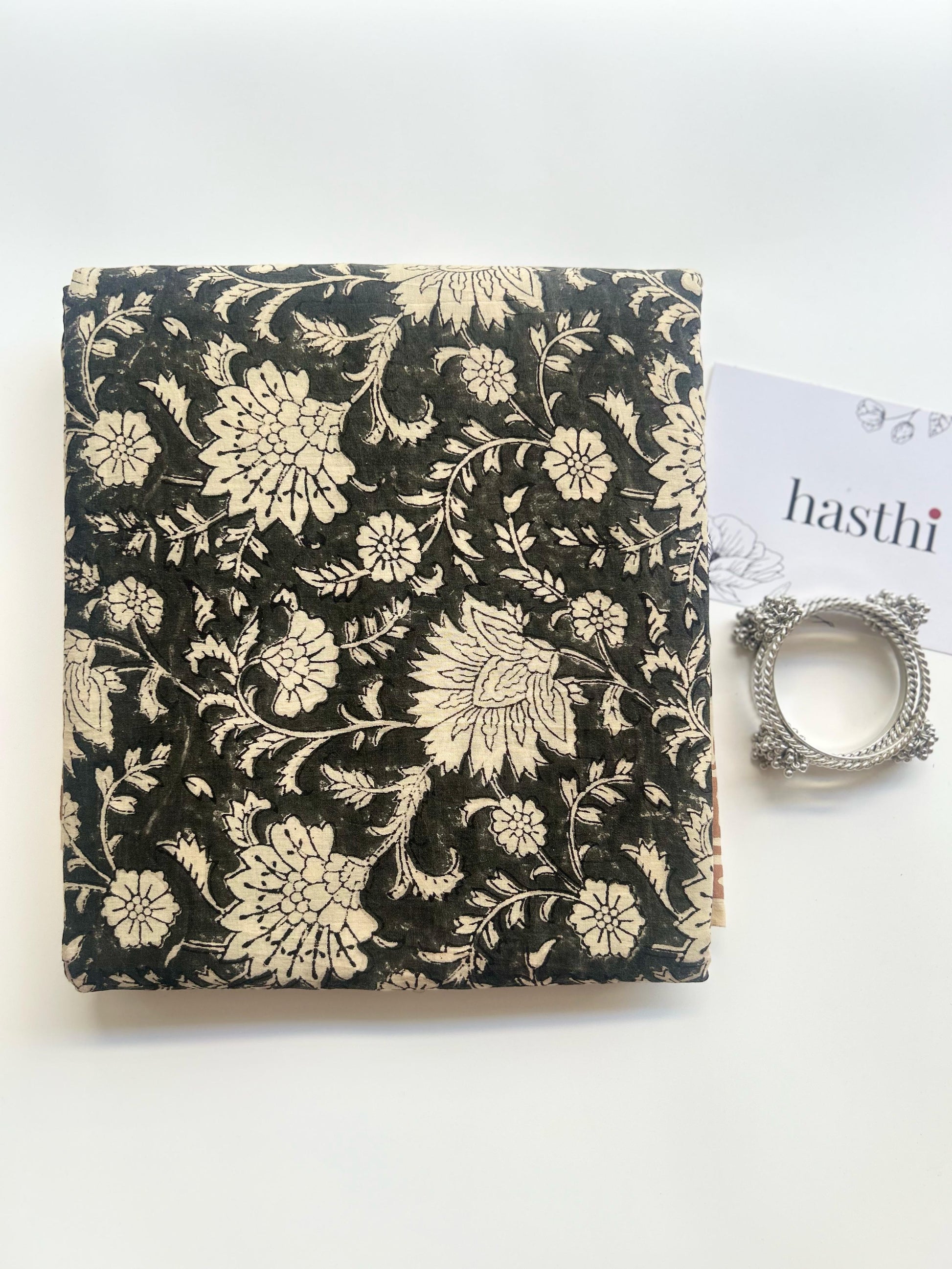Elevate your everyday ethnic style with the understated elegance of this Charcoal Black Block Print Mul Cotton Saree. Crafted from ultra-soft and breathable mul cotton, this saree offers all-day comfort with a fluid drape that flatters every silhouette. The deep charcoal black base is accentuated with delicate hand block prints in subtle patterns, creating a look that’s both refined and rooted in tradition. Minimal yet impactful, this saree is a versatile staple—perfect for workwear, casual outings, or intimate cultural gatherings. It effortlessly bridges classic artistry with modern minimalism.