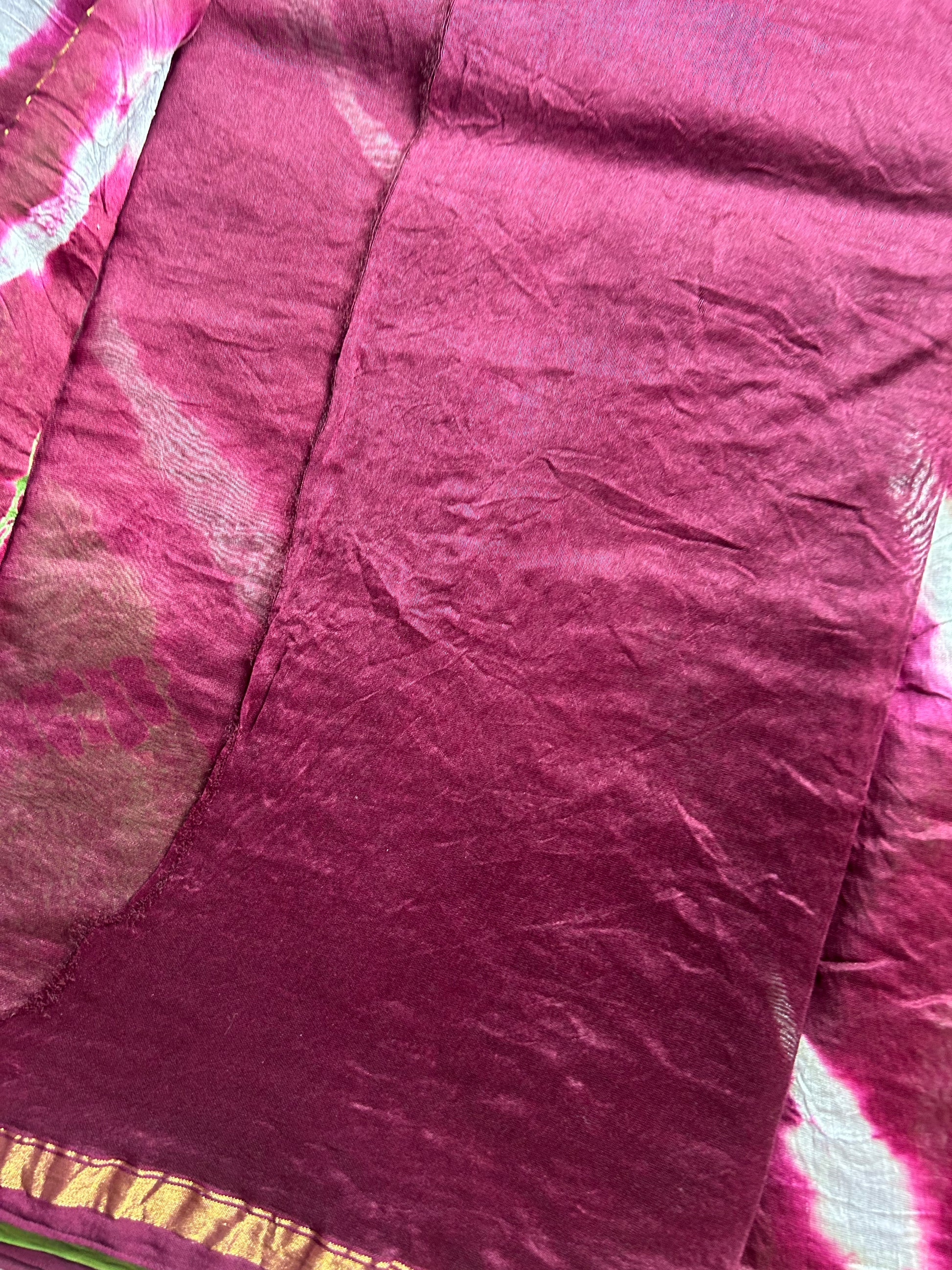 Green & beetroot pink shibori Chanderi silk saree