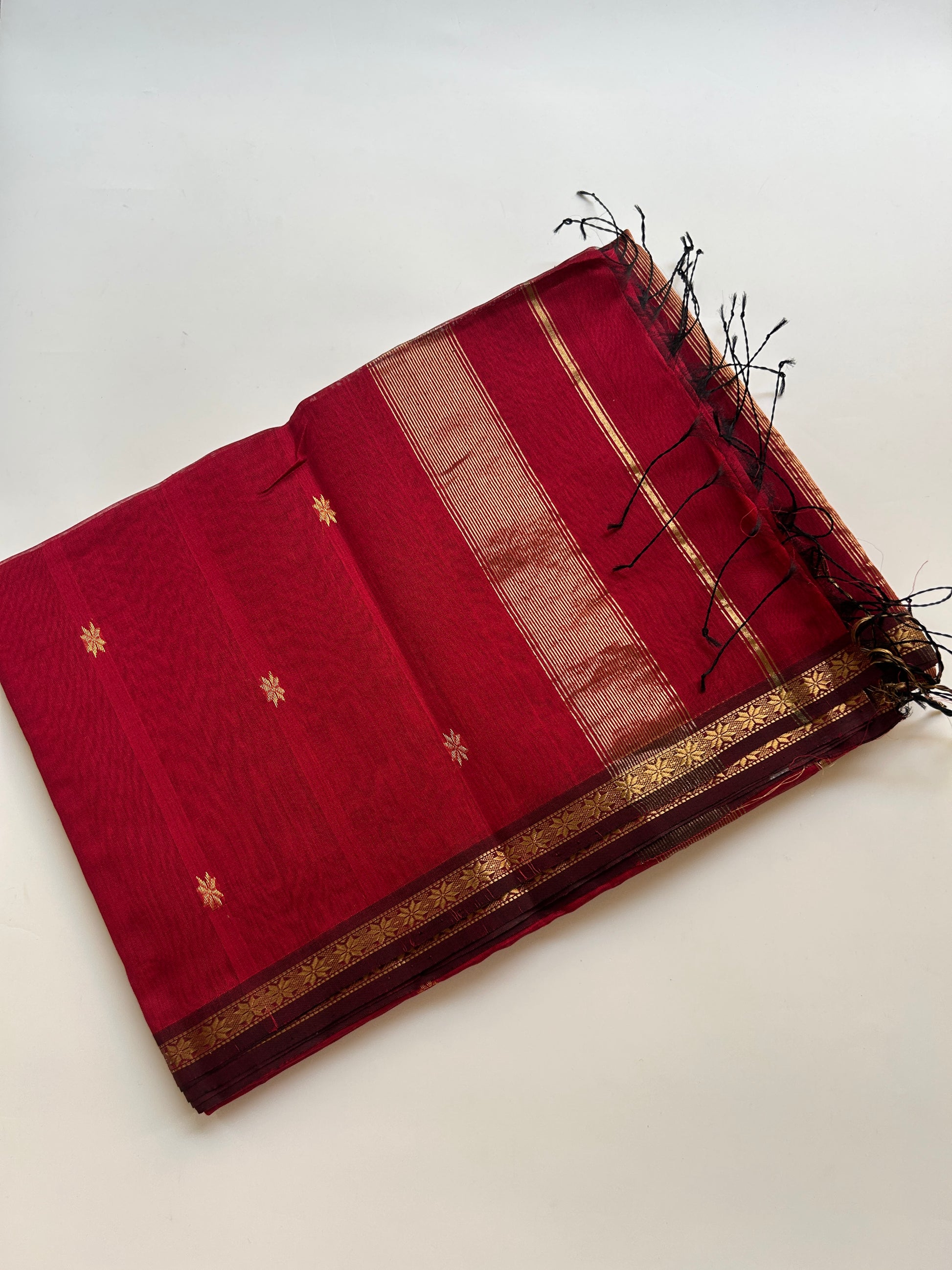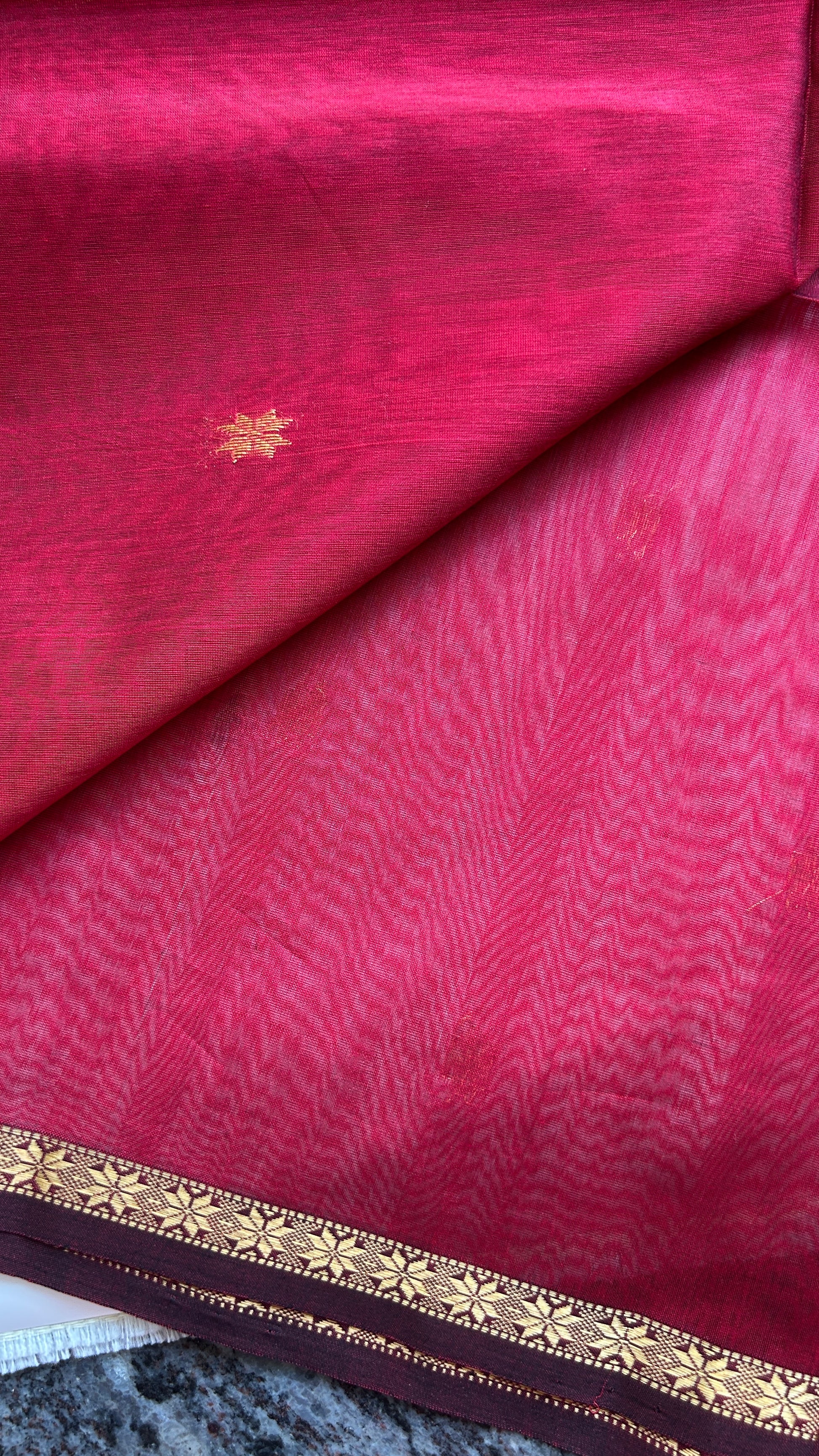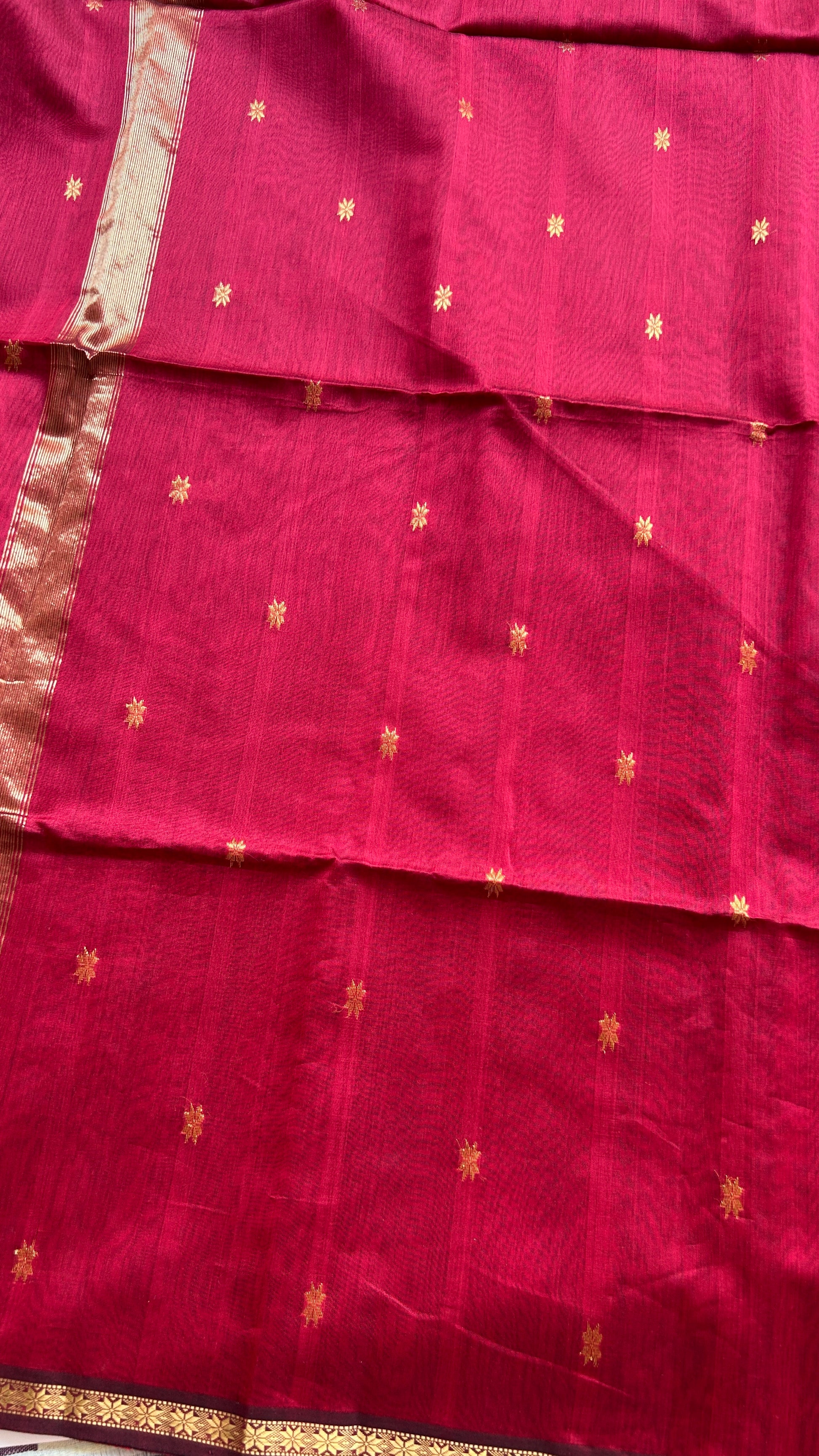- Design: Maroon with zari butti