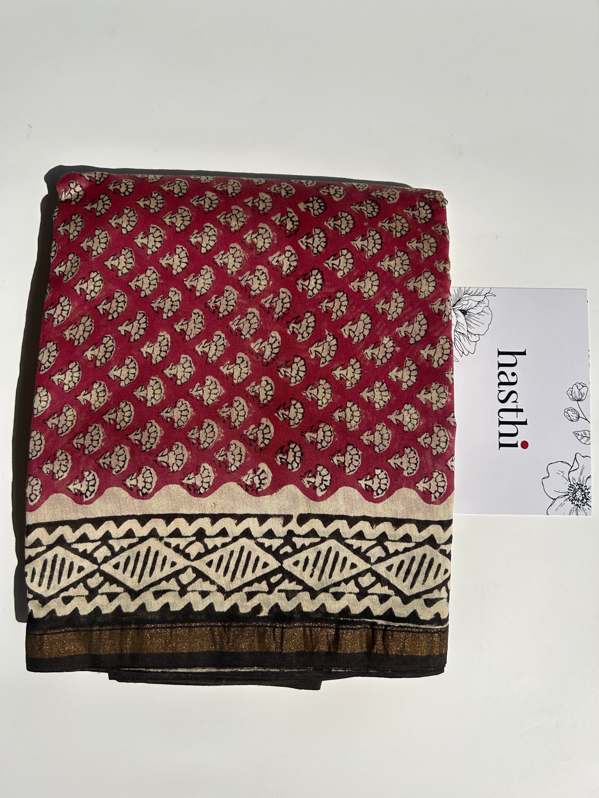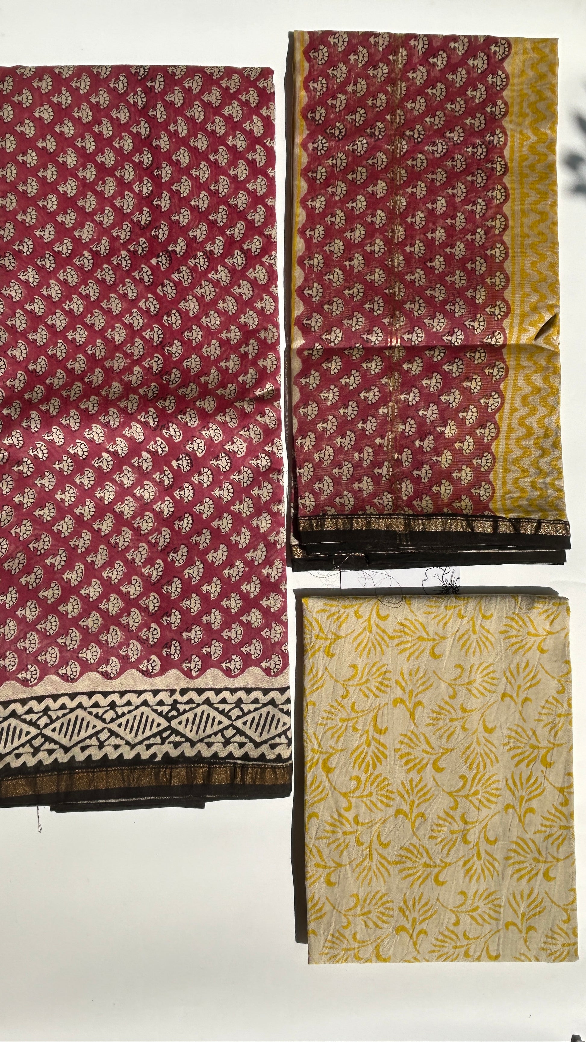 - Top: Old mauve Chanderi silk with delicate white blockprint motifs